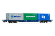 Three different OO-scaled 20ft-long containers are featured in this model replica of Touax KFA, including those representing the Evergreen Marine Corporation, NOL (Neptune Orient Lines) and French shipping company Delmas.