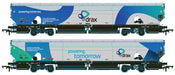 These new and exclusive Hornby IIA-D twin packs each feature a pair of uniquely numbered biomass wagons. This pack features 83 70 0668 019-2 and 83 70 0698 018-4. The wagons have turned metal wheels, NEM coupling pockets with small tension locks fitted, optional buffer beam brake pipes and an accurate body profile which includes internal equipment visible through the cutouts in the bodysides.