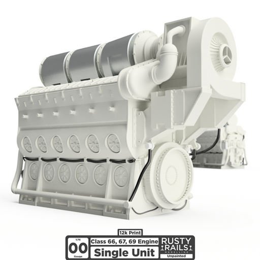 Rusty Rails ModellingThis 3D printed engine block models the EMD power unit from a Class 66/67/69 - each pack contains one engine. They are modelled for 'OO' gauge by R...