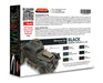 Start out in weathering with our pick of the Shades of Black Lifecolor paint set and a trio of top quality brushes in different sizes to apply and adjust your paints.